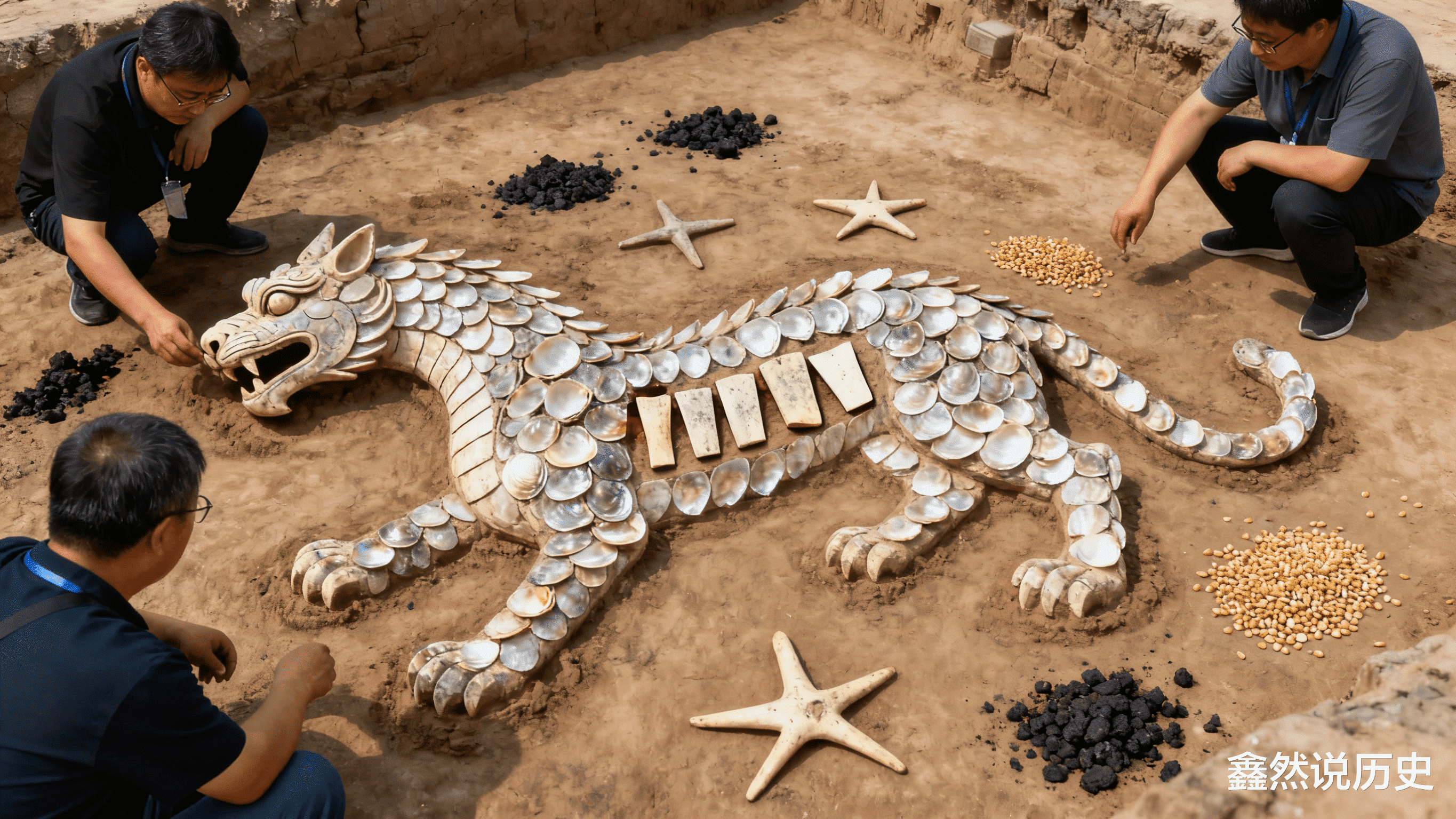 2019 年,河南濮阳西水坡遗址,出土了一处距今 4500 年的蚌壳摆塑。