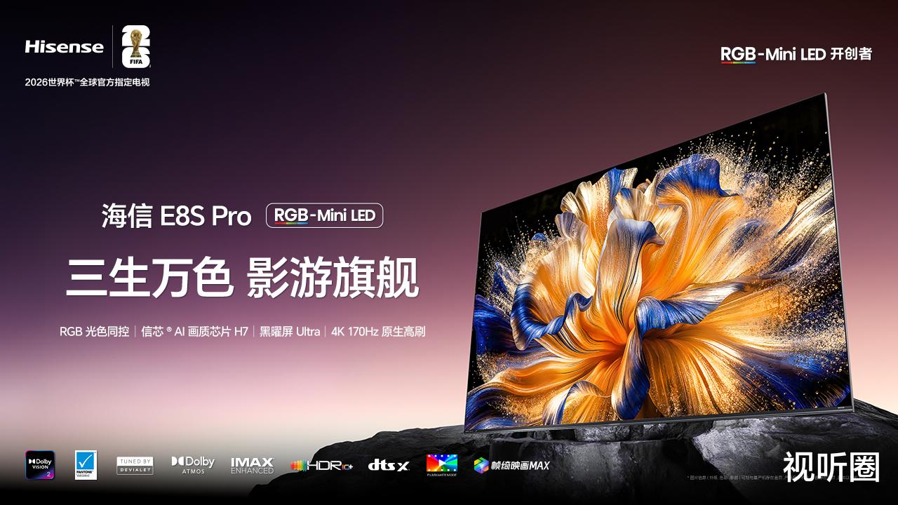 E8S Pro凭什么被称为“2026年跨代影游机皇”?主要是因为在RGB-Mini LED这张“王牌技术架构”托底下,E8S Pro在画质、音响和场景交互等多维度上都实现了显著突破,尤其注重影音与游戏场景的深度适配。