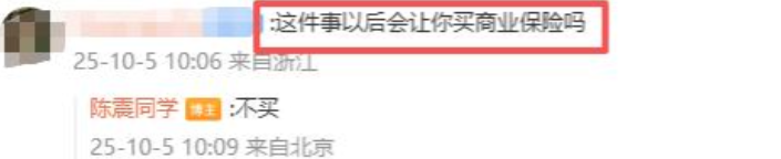 10月4日,北京交警通报陈震(43岁)承担全责,无酒驾毒驾行为。有网友在陈震社交媒体留言询问:“这件事之后会让你买商业险吗?”陈震回复:“不买。”此举引发讨论,有同行估算修车费用至少百万,足以购买高额保险。