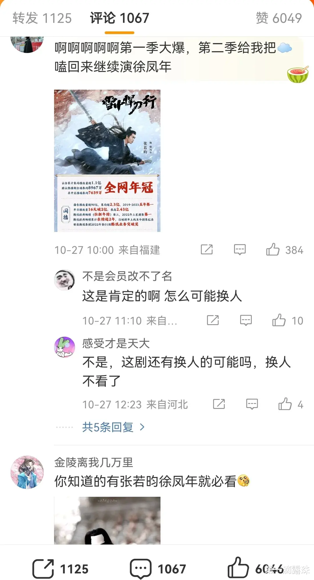 好在随后有影视大V爆料确认,张若昀将继续饰演徐凤年,完整呈现“黑发入北莽,白发返凉”的成长线,这才让大部分观众吃下“定心丸”。