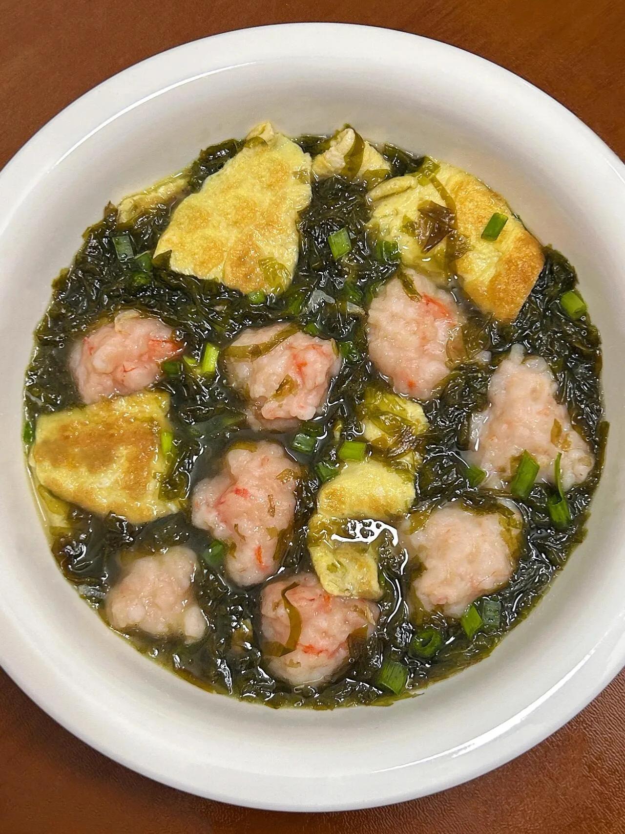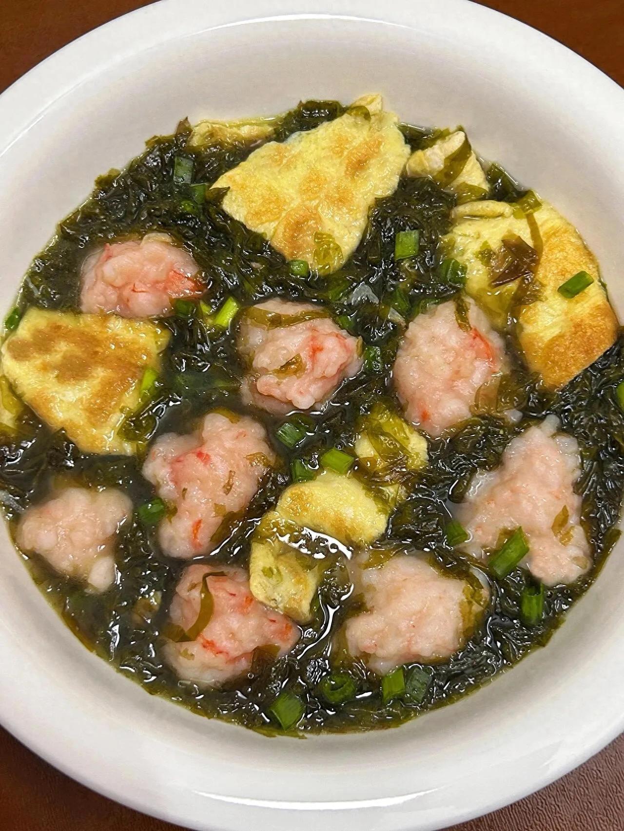 当这道飘着海味的汤端上桌,女儿迫不及待用汤勺舀起虾滑,吹凉后小心翼翼地咬开,眼睛突然亮起来:"妈妈!虾滑会跳舞!"看着她把紫菜捞起来裹在虾滑上,创造"海苔虾滑卷"的吃法,我忍不住想起小时候外婆做的虾丸汤——那时候外婆总说:"吃虾聪明,多吃点长高高。"现在我把这道菜改良成更鲜美的版本,成了女儿最爱的"魔法汤"。