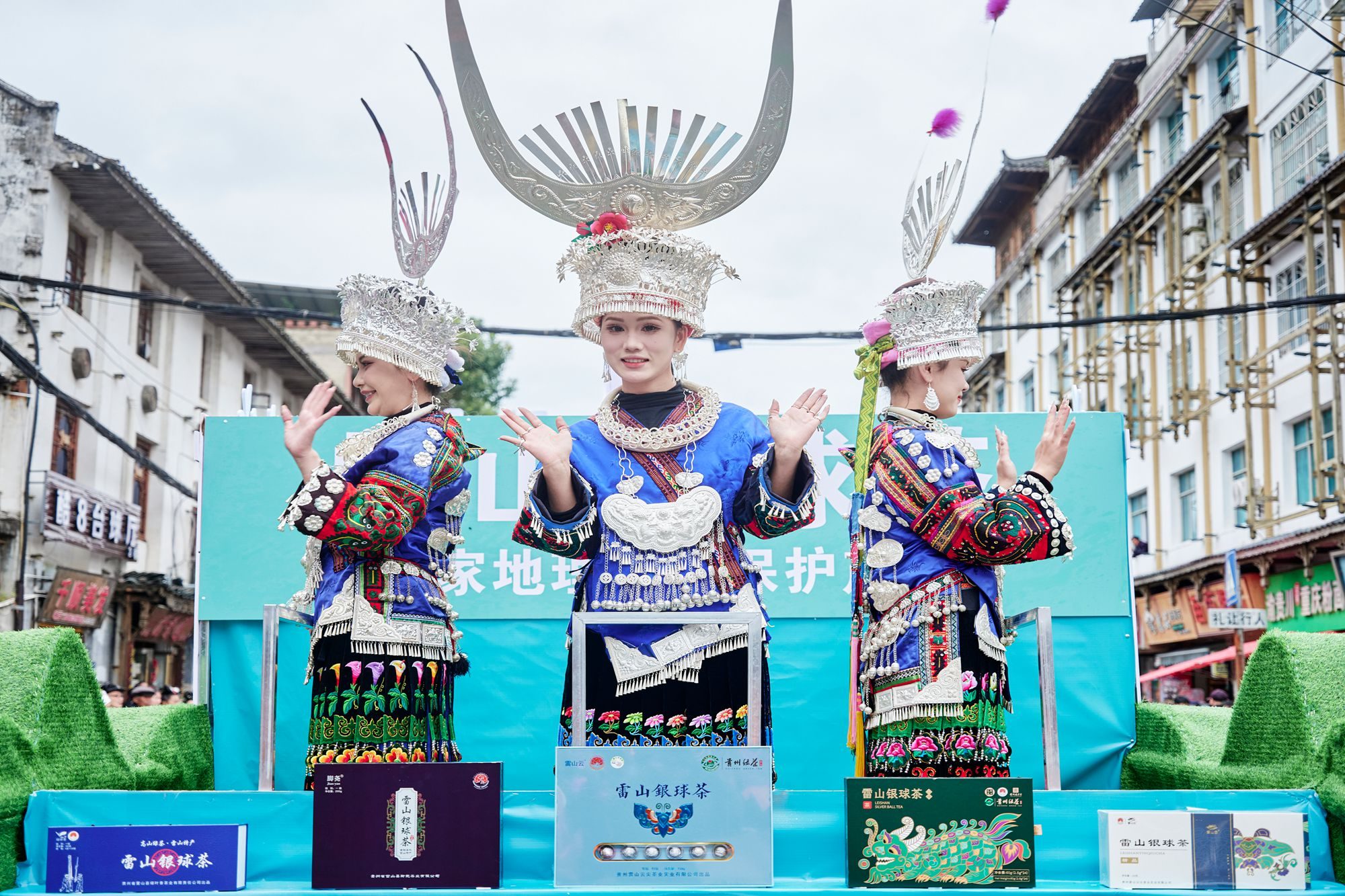 除了美丽的苗族姑娘,花车上的苗族特产同样引人关注。雷山银球茶是当地名茶,形状独特,表面为银灰墨绿,圆滚滚的茶球冲泡后舒展成嫩芽,喝上一口香味浓醇,爽口回甘,非常适合买来当伴手礼送亲朋好友。