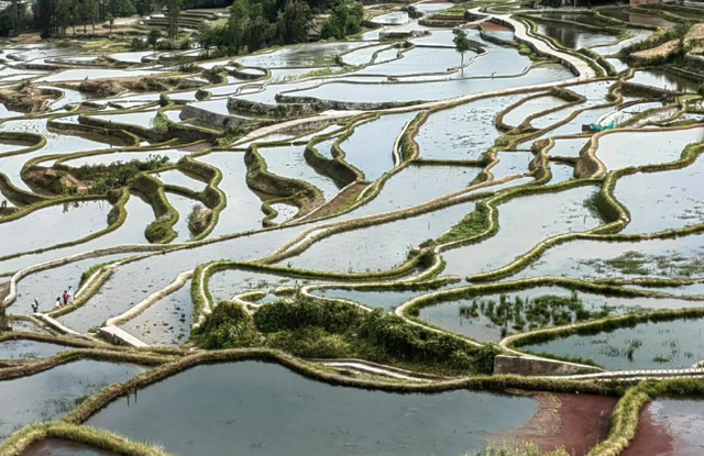 愤怒的我们俩,还扬起稻田边的稀泥,互相往身上涂抹。层层梯田中,这岔路口水稻田算是一个较大的了。这里,我们各跑一段,在相距十多步的地方,跳到水稻田里。一手拿着斗笠当盾牌,一手抓起田中稀泥当子弹,配合着嘴里的骂声,向对方扔了起来。