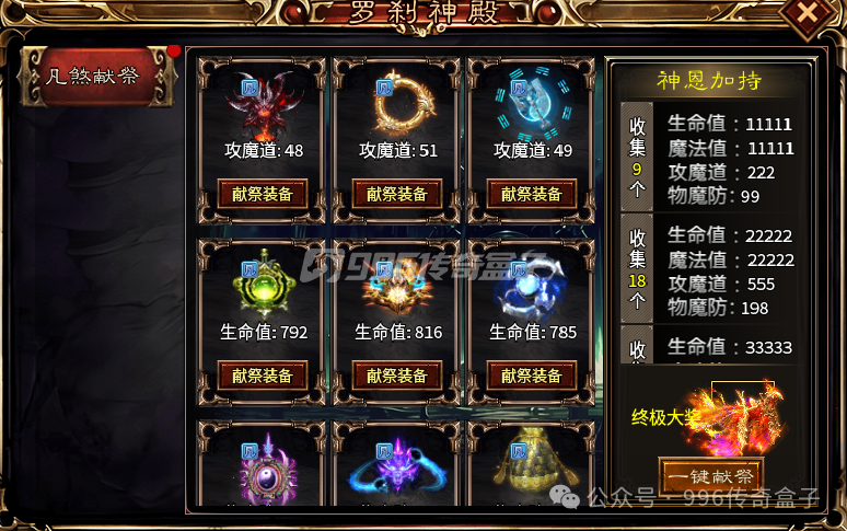 五大陆会新增罗刹神殿,献祭装备可以获得属性,类似于图鉴收集的玩法,全部献祭完成可以获得坐骑,加切割倍率,还有超强BUFF加成,永久提升50%切割倍率,外观也是很帅的。