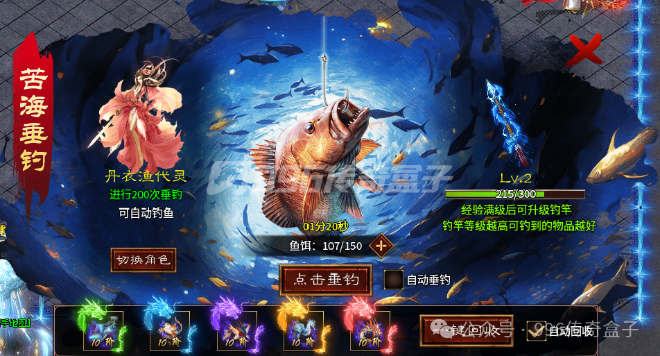 上线领取奖励之后,先去垂钓,就是苦海垂钓这个玩法,鱼饵最多一百五,解锁苦海尊者才能自动垂钓,但我目前不知道在哪解锁这个苦海尊者。下四大陆的条件是垂钓一百八十次,但是不能等到要下大陆的时候再去垂钓,因为鱼饵要不然花钱买,要不然等时间恢复,所以可以在一大陆的时候就先去钓鱼,然后下四大陆的时候,鱼饵就再一次恢复了,不会卡大陆。可以切换垂钓角色,有额外加成,垂钓会获得经验,满级后可以升级钓竿,钓竿等级越高,钓到的物品越好,垂钓宝物是有等级压制的。