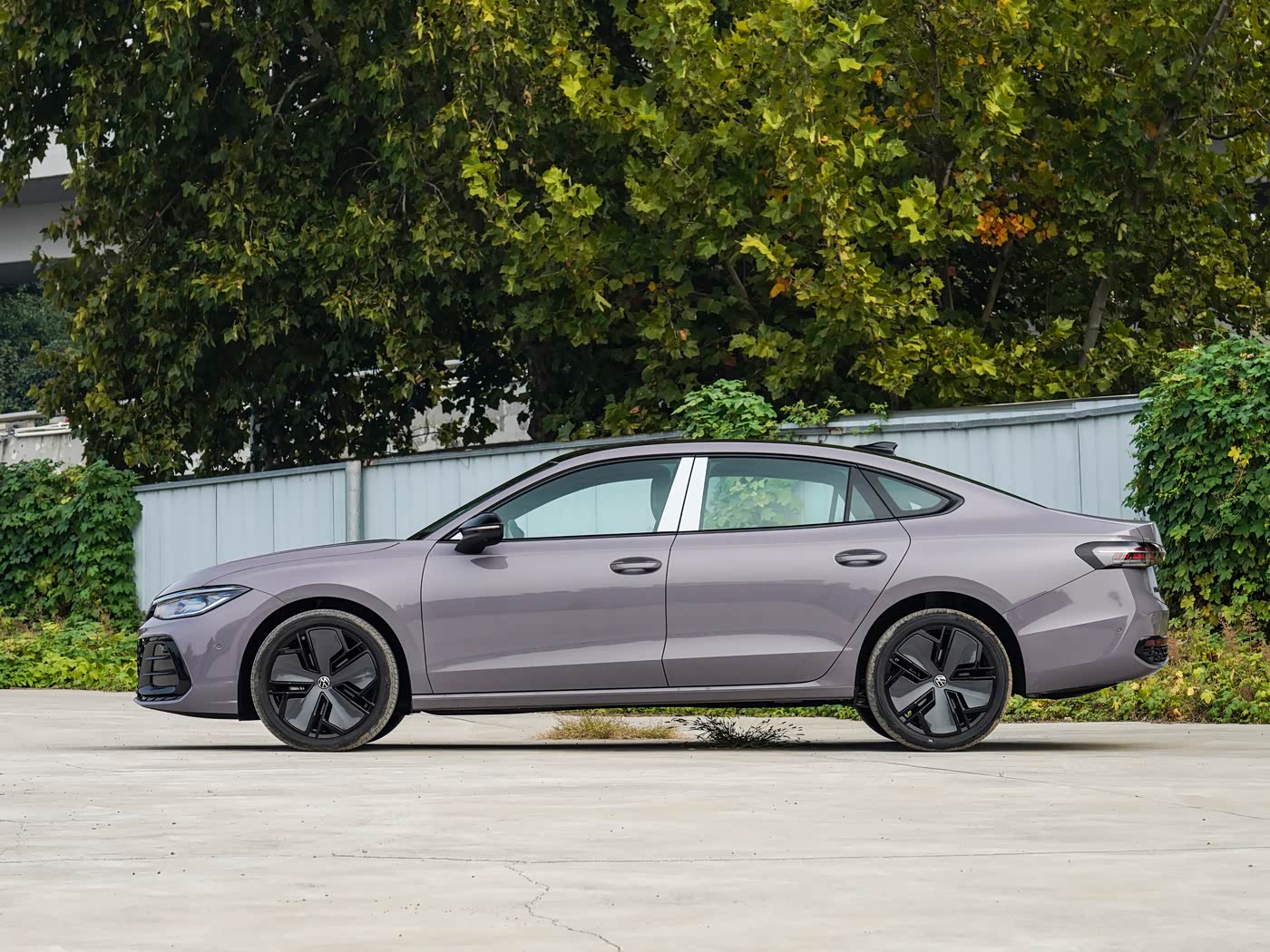 帕萨特Pro通过双版本前脸策略精准覆盖不同消费群体:先锋版采用横向镀铬格栅与贯穿式下包围,营造稳重大气的商务气质;星空版则以熏黑菱形网格下格栅、可发光LOGO与贯穿式LED灯带,搭配前杠两侧导风槽设计,塑造出更具科技感的运动姿态。车身侧面采用双腰线设计,上腰线从前大灯贯穿至尾灯,下腰线内凹处理配合溜背式车顶,5006mm的车长与2871mm轴距构建出修长扁平的视觉效果。车尾贯穿式3D尾灯组嵌入192颗LED晶体,点亮时呈现星空渐变效果,后包围区域通过镀铬饰条与黑色扩散器组合,中央红色LED灯带强化了层次感。凯迪拉克CT5延续“艺术与科技”的钻石切割美学,前脸采用垂直日间行车灯与大灯相连的“T”字造型,下包围经过重新设计更显简洁动感。车身侧面保留轿跑式溜背线条,短前悬、长车头设计凸显纵置后驱的豪华血统,C柱三角窗位置的阿尔法钻石折角成为点睛之笔。车尾直插车身的不规则尾灯、微扬上翘的“小鸭尾”设计与双边四出排气,将运动基因转化为视觉符号。新增的“台风绿”“逐风蓝”车漆与运动版黑色套件,进一步强化了个性化表达。