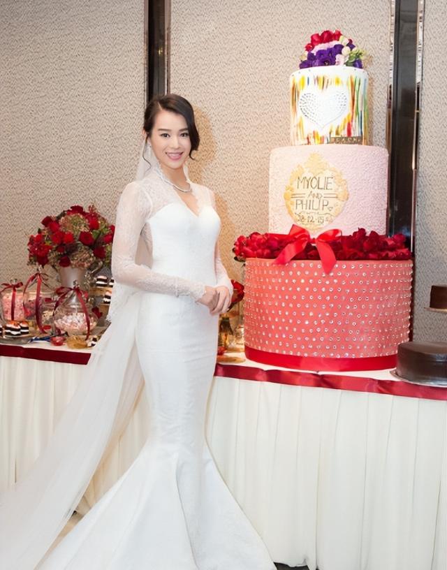 2015年,胡杏儿闪婚猎头公司老板李乘德,婚礼现场笑得很幸福。