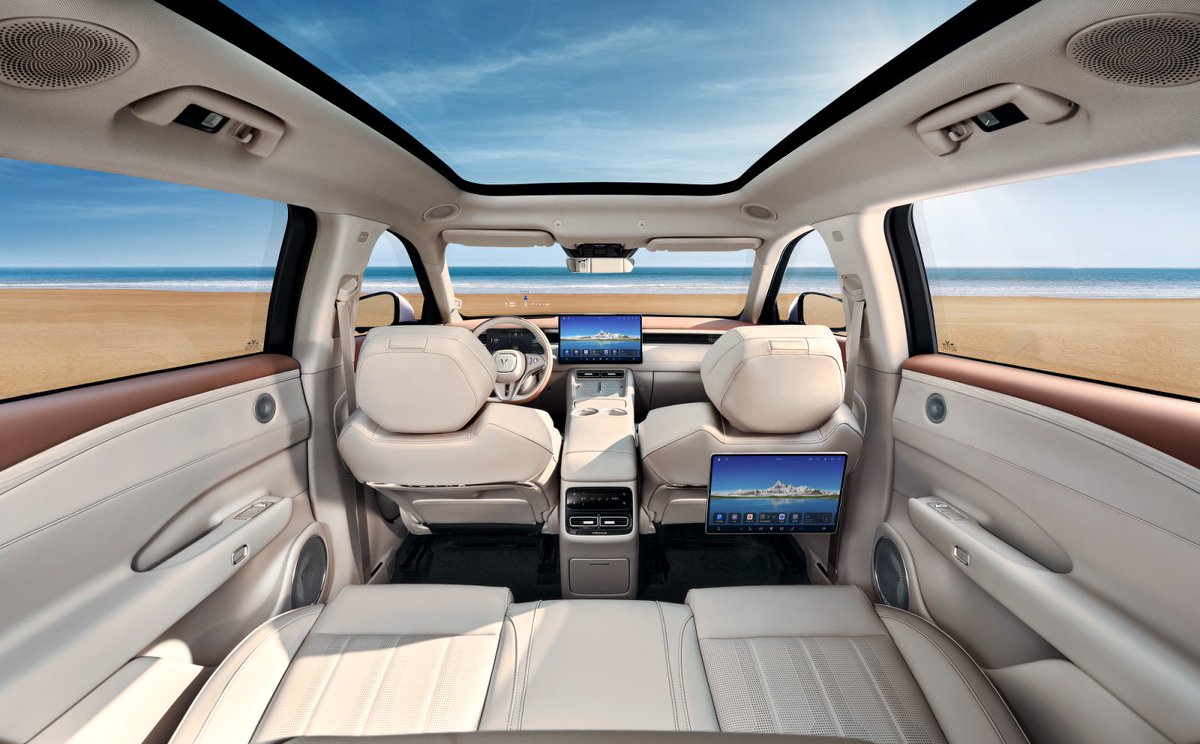 云朵舒享座椅2.0,主驾配备“撑腰”领航座椅,副驾是“女王座椅”带163°舒躺模式和智能美妆镜;后排座椅支持通风、加热和吸风功能,长时间乘坐也不会闷热。
