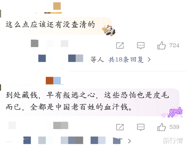 “这么点应该还有没查清的”“只有这么一点点?”“到处藏钱,早有叛逃之心,这些恐怕也是皮毛而已,全都是中国老百姓的血汗钱。”“绝对不止”“几万亿面前,洒洒水”……