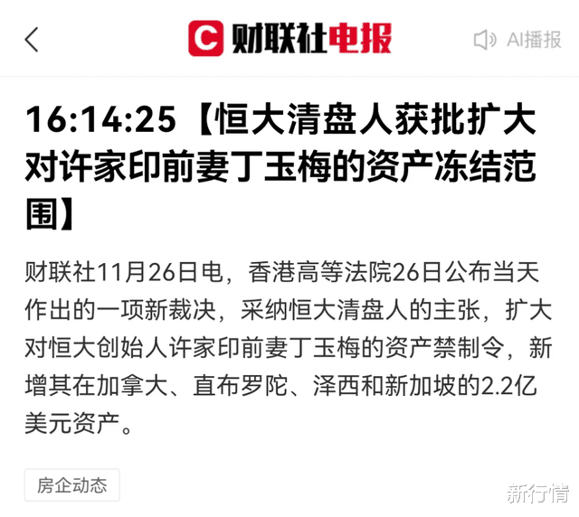 先看丁玉梅,早在其更多海外资产曝光前,2024年7月,香港及伦敦法院已联合对她发出全球资产冻结禁令,核心目标是追回她与许家印、恒大前高管等人在恒大财务造假期间获取的约 60 亿美元不当分红及酬金。