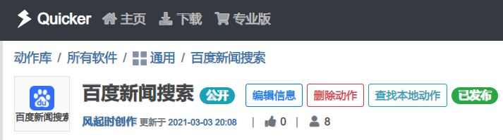 现在就去Quicker官网下载客户端,搜索「百度新闻搜索」安装动作,设置好快捷键——相信我,用过一次你就会纳闷:以前怎么忍得了那些麻烦步骤?