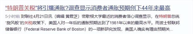 2、“特朗普关税”将引爆通胀?调查显示消费者通胀预期创下44年来最高——财联社2025-04-21 09:12