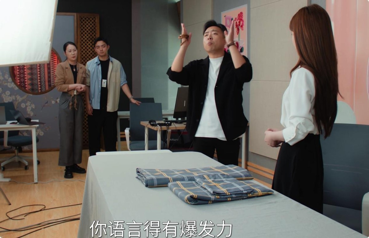 更妙的是,他后半段陪许妍拍直播、教她怎么带货,那几场戏完全放飞自我。