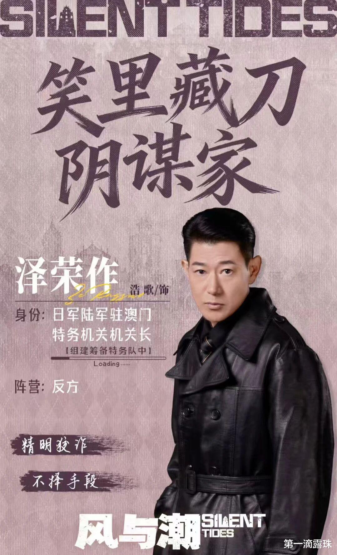 在《风与潮》中一个演更阴险的鬼子,一个演手段狠辣的汉奸,是浩歌(矢野浩二)与胡明的首搭。