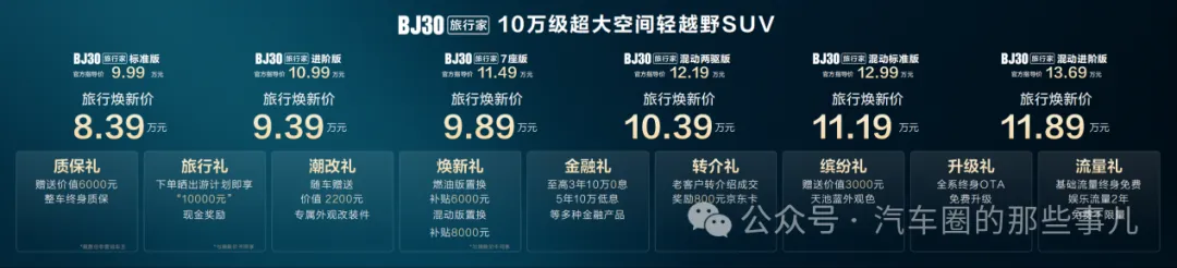 10月25日,“人人都是旅行家”北京越野BJ30旅行家成都上市发布会隆重举行。BJ30旅行家定位为10万级超大空间轻越野SUV,共有6款车型,官方指导价为9.99—13.69万元,旅行焕新价最低只需8.39万元起(叠加补贴和厂端置换后)!