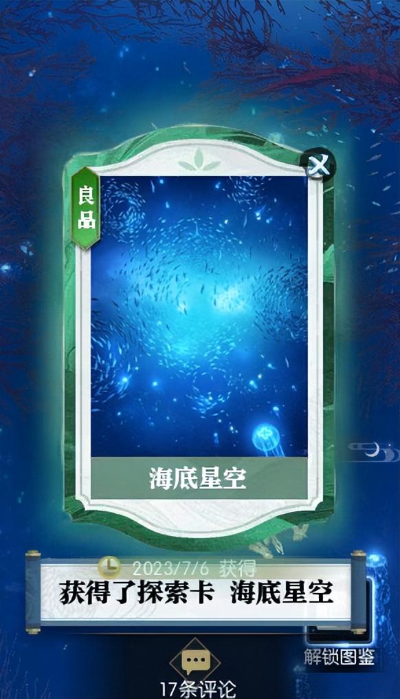 看完这些美景,玩家在游戏中还会收到一个“海底星空”的说英雄卡片,证明我们来过。