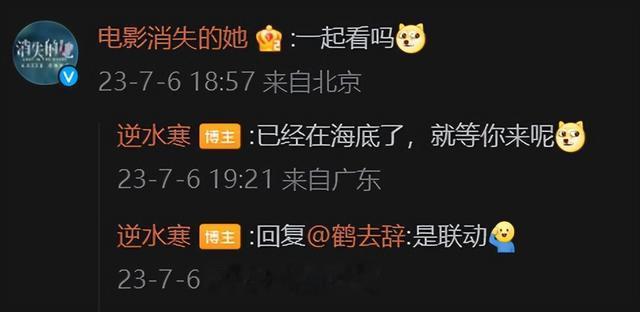 随后,《消失的她》官博回应:“一起看吗?”