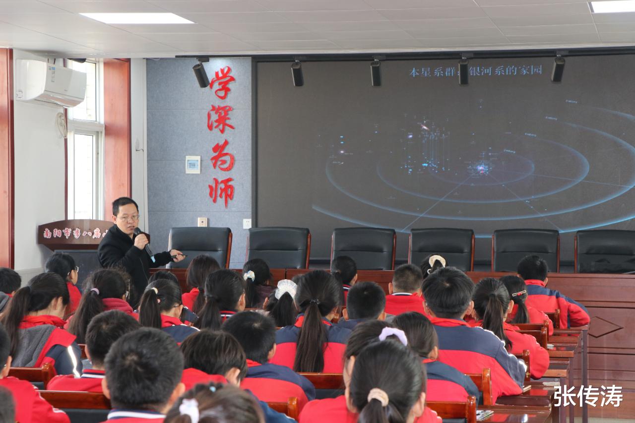 活动中,南阳师范学院李志刚教授带来了精彩的天文知识讲座。他用生动形象的语言、贴近生活的案例,将遥远神秘的天文知识深入浅出地娓娓道来,从太阳系的行星运转到恒星的生命周期,从星座的传说故事到宇宙的起源奥秘,让同学们在轻松愉悦的氛围中领略天文科学的魅力,原本抽象的天体概念变得鲜活可感。