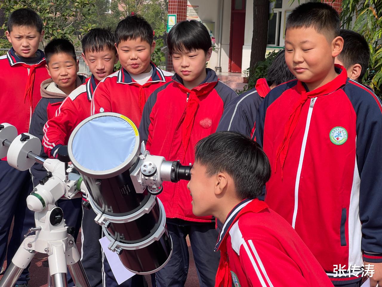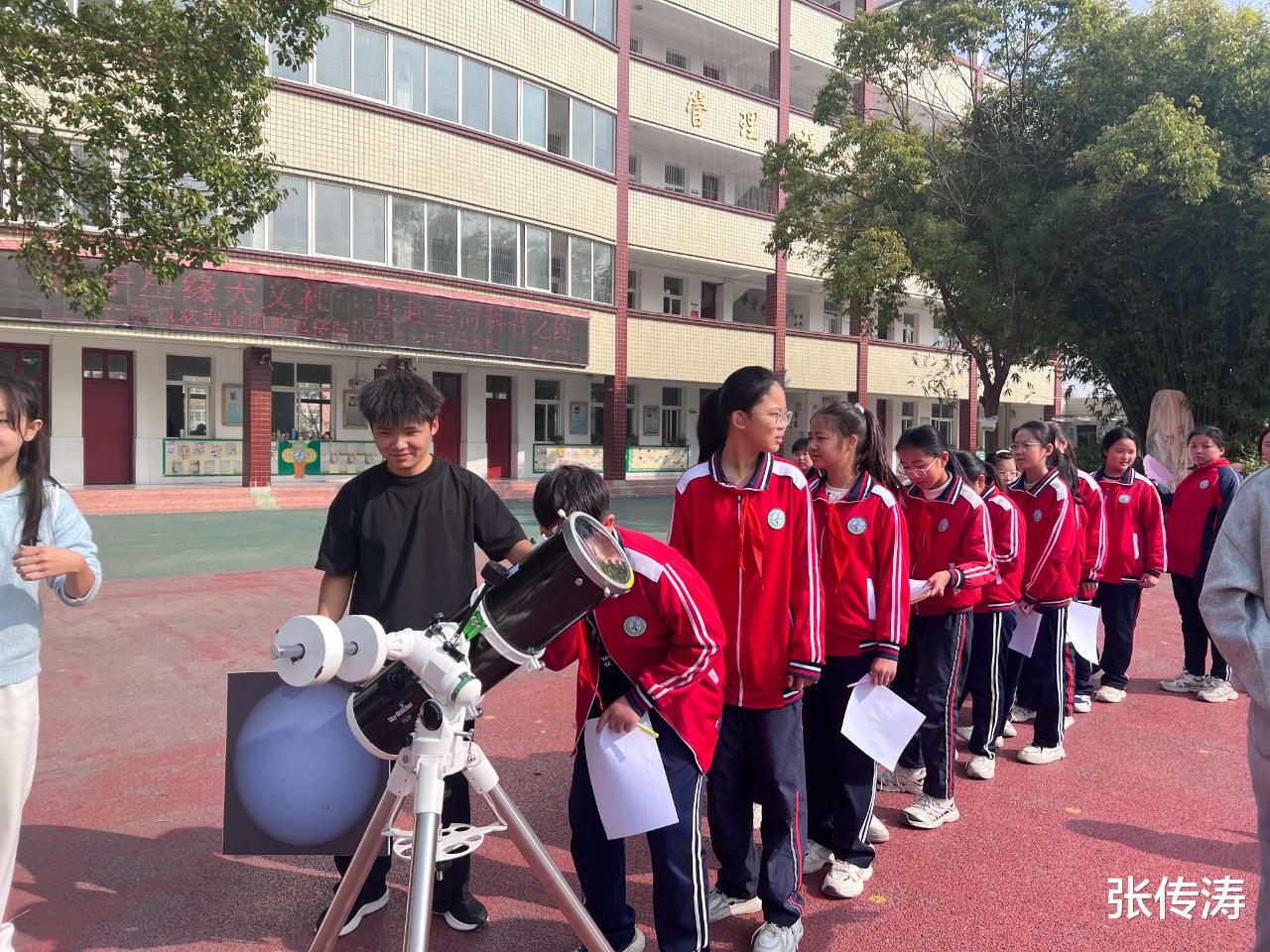 最让同学们兴奋的是户外观测环节。在天文社同学们的专业指导下,大家有序聚集在操场,通过专业天文望远镜近距离观测太阳黑子等天文现象。当一个个清晰的天体影像映入眼帘,同学们不时发出阵阵惊叹,亲身感受着宇宙的浩瀚与神奇,将课堂上学到的理论知识转化为直观的视觉体验。