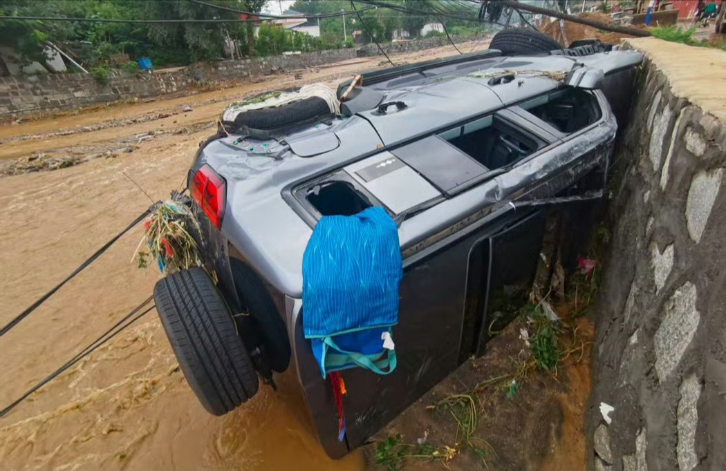 据了解,事发当日,这位豹5车主携带拖车绳驾车前往积水路段,计划为受困车辆提供救援。不料水位急剧上涨形成洪流,车辆瞬间被卷入其中。而作为“越野新王”,豹5此次在洪水中的表现,正是其极致可靠性的实战检验。当洪流裹挟车辆冲撞障碍物时,其车身用料展现出强悍抗扭能力,车辆外观全程无明显形变;DMO 电驱越野开创平台的低质心设计,在洪流中稳住车身,避免侧翻这一致命风险;而车门受水压无法开启时,自动触发应急功能开启天窗,更是将应急安全设计发挥到极致——这些为极端场景打造的硬核配置,在洪水中成了守护生命的“安全铠甲”。