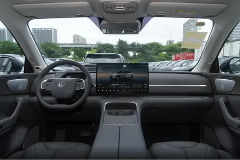 内饰设计沿袭简洁规整风格,中控台的空调出风口采用隐藏式贯穿设计,提升视觉通透感及整体美感。配备17.3英寸2.8K分辨率悬浮大屏以及10.25英寸全液晶仪表盘,大幅提升信息获取效率和操作便捷度。内饰大量采用Nappa真皮包覆,辅以金属镀铬与钢琴烤漆装饰,营造出接近豪华车水准的质感氛围,为用户带来高级尊享体验。