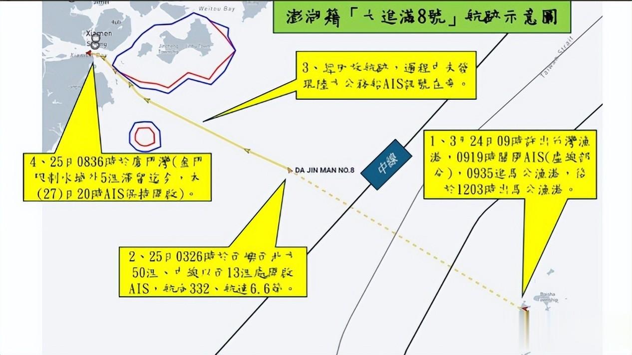 渡海要“加油”?走私疑云重重澎湖西屿籍渔船“大进满8号”,在3月25日凌晨正漂在澎湖以西49海里、离金门33海里的位置。
