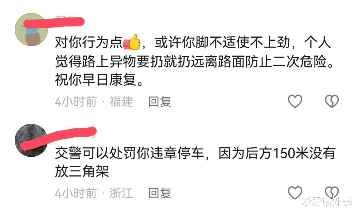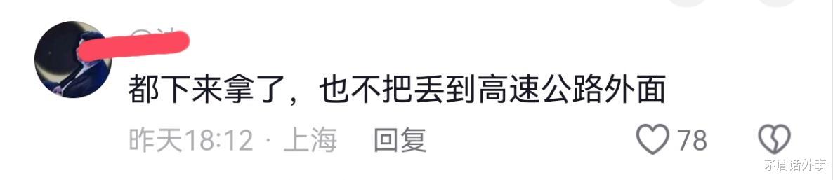 然而在现实中,这种人不要说在高速上去排除风险,就算是在平常小路上,都不见得愿意去捡一下垃圾,这真的很可笑。