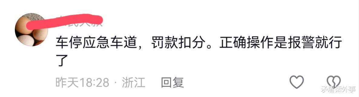有人说男子违法了,因为他在应急车道停车了,正确的做法是打高速救援电话。