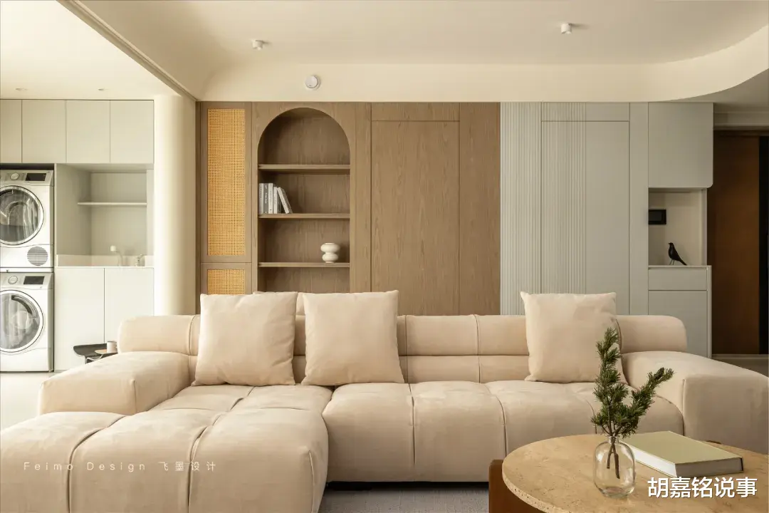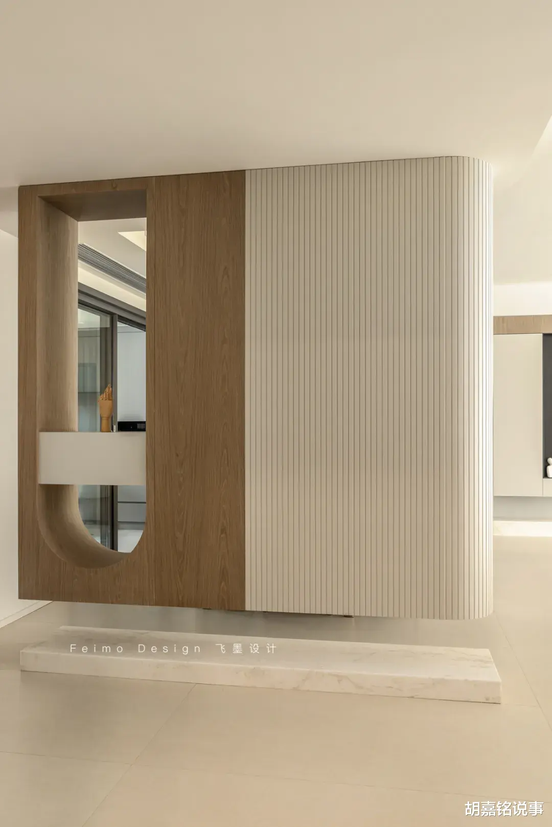✅考虑兼顾隐私与收纳效果,空间足够的情况下,可以将玄关柜直接设计在入户门的对面。✅只考虑隐私性,也可以在入户门对面增加隔断,材质可选择玻璃。4、优化隔音效果在过去我们说的好户型,还需要满足动静分区。但是四叶草户型显然动静分区相对混乱,如果入住人口多,建议优化空间的隔音效果。