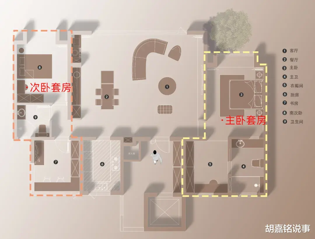 ✅如果墙体是非承重墙,可以全打通,竖厅变横厅。✅如果墙体有一半是承重墙,可以半打通,实现半开放式多功能区设计。3、四室改两室最最最舒适的居住体验,直接四居室改两个大套间。