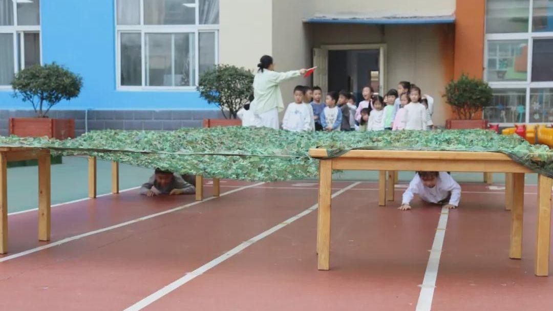 信阳市浉河区幼儿园大班的孩子在这特别的日子迎来了一场充满热血与童趣的“保卫祖国我最棒”体能游戏活动。孩子们化身小红军穿越时空,循着历史的足迹开启了一场特殊的 “红色历练”:“飞夺泸定桥、巧渡大渡河、翻越大雪山、穿越火线、炸碉堡”,每一个环节里,孩子们都眼神坚定、全力以赴,用行动表达了自己对祖国、家园的热爱。