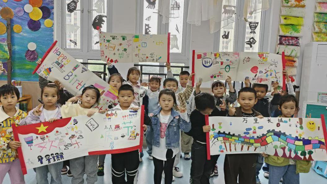 国庆主题活动中,园所分别以“童心探国庆调查表里藏乾坤”“童心飞扬播撒家国种子”“动手创作,定格国庆记忆”“重温长征路厚植爱国情怀”“童心祝愿共唱红歌嘹亮”等环节表达对祖国76周年华诞的真挚祝福。
