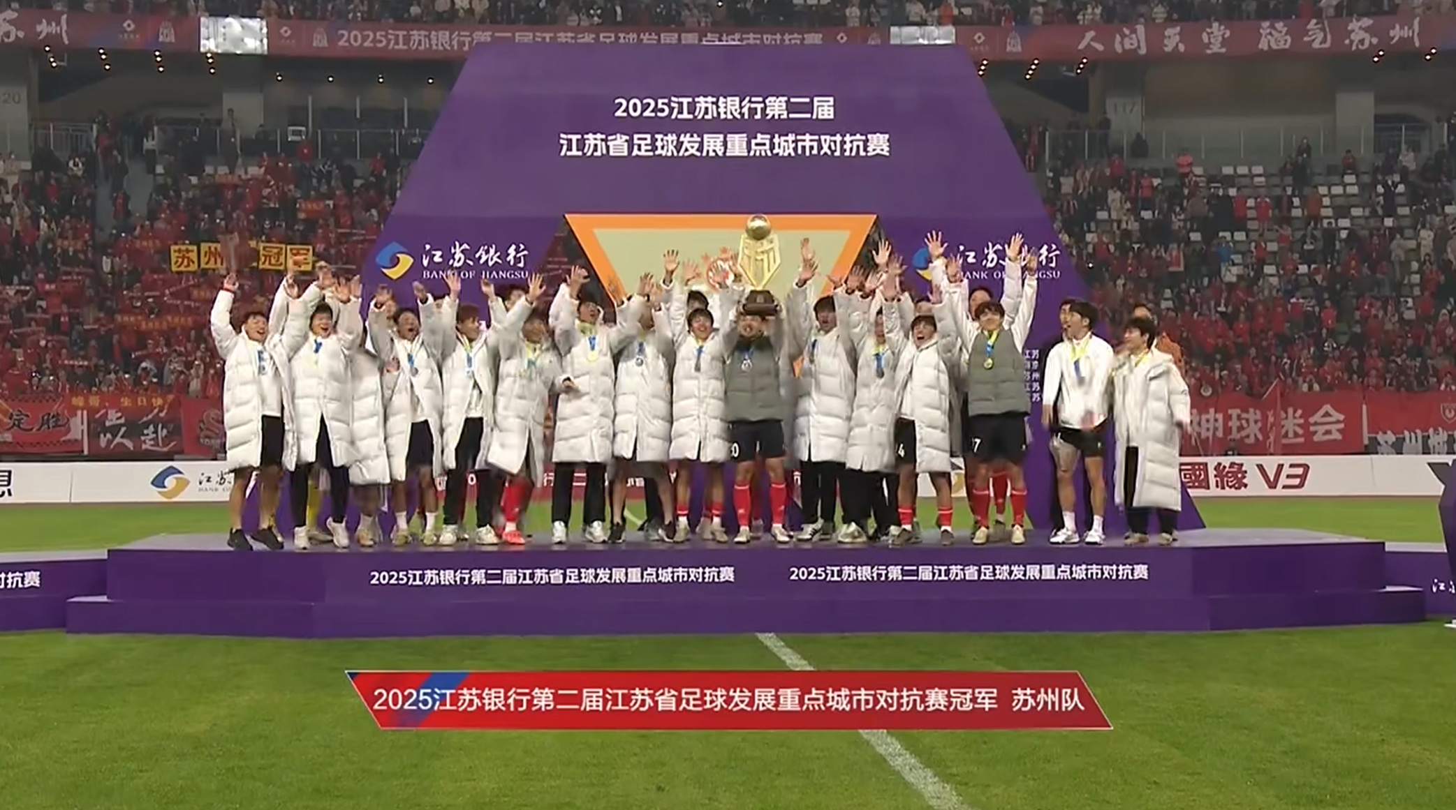 最终,次回合,苏州0比1南京,本场比赛,有41632人来到现场观战。不过总比分苏州3比1胜南京,苏州卫冕成功,夺得2025江苏省足球发展重点城市对抗赛冠军,2024年的首届比赛,苏州总比分1比0夺冠。