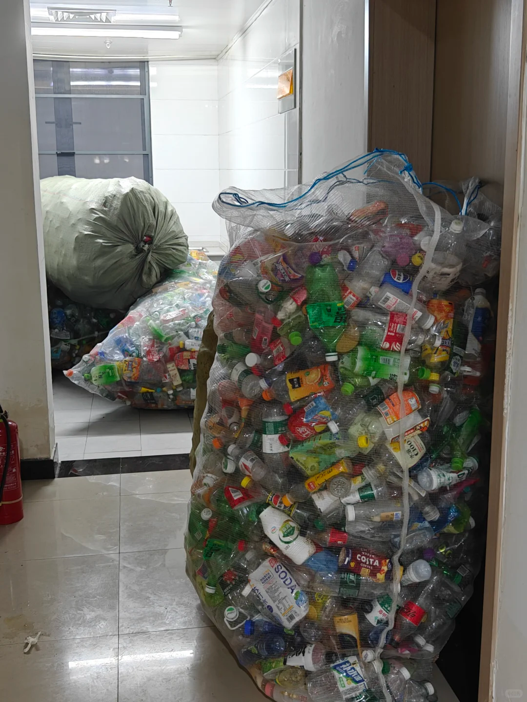 再把这些瓶子罐子统统都放在一个袋子里,然后这么直接放在家里。在他们眼里,这不是垃圾,而是洒落在地面的人民币。