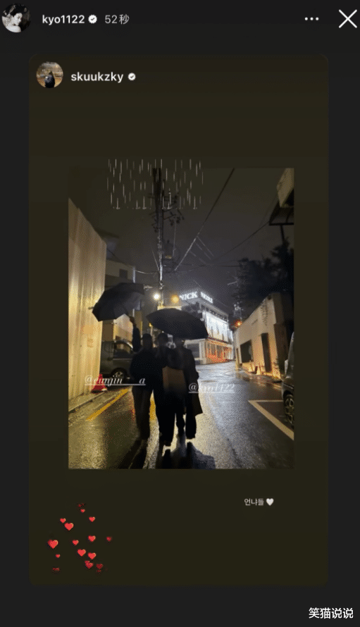 宋慧乔更新了自己的INS动态,她在快拍上转发了秀智的快拍,那是她和秀智以及安恩真三人相聚时的合照。在照片中可以看到,她们三个人站在一起,其中两人拿着伞举得老高。站在左边是安恩真,站在右边的短发女生是宋慧乔,宋慧乔穿着白色打底衫搭配卡其色风衣外套与黑色长裤,看起来很有御姐风范。站在中间的是裴秀智,她穿着一身黑色的套装,束起长发,看起来很干练。秀智的手里还拿着一个纸袋子,看样子应该是生日礼物。她们三人开心的对着镜头合照,看起来看得出这一次的聚会很开心。