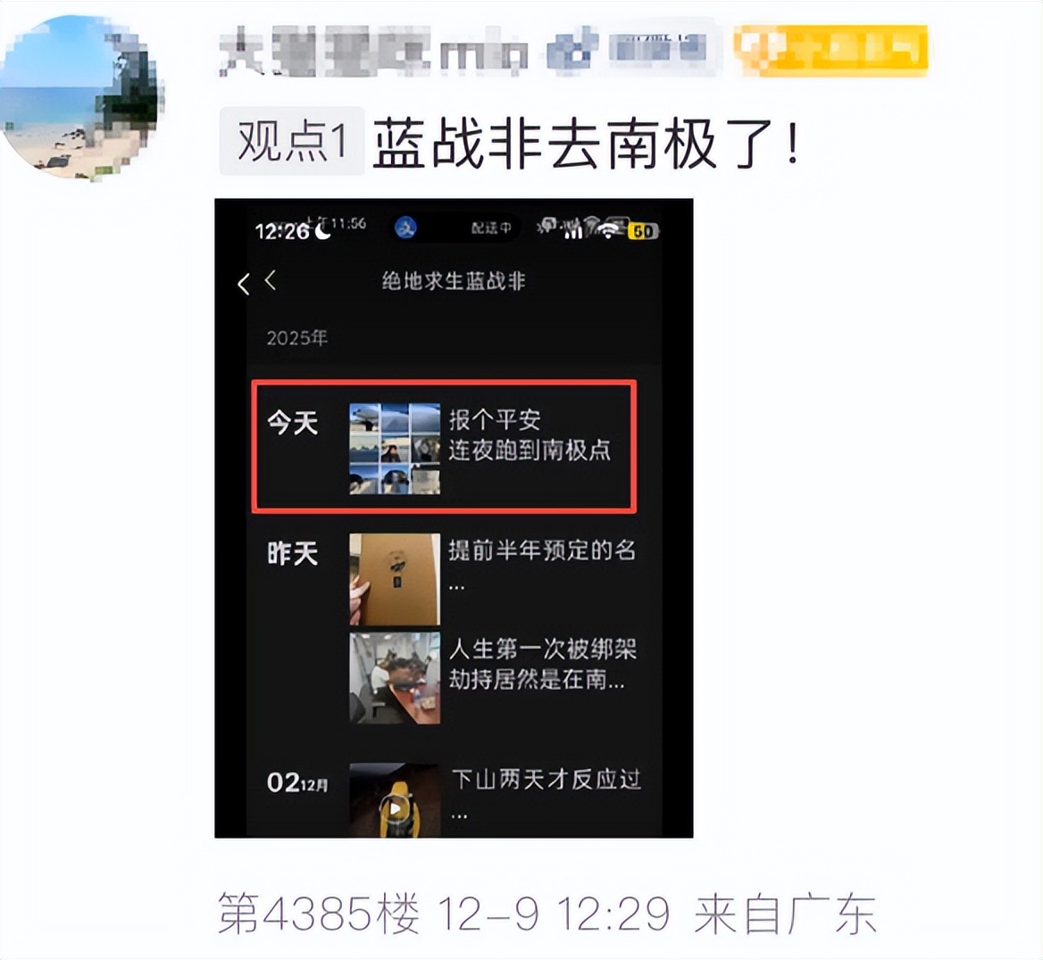 网友看完安保细节后纷纷后怕:“要是当时上了那辆伪装的出租车,后果不堪设想!” 更让人意外的是,有知情人透露,蓝战非在脱离危险后,已经连夜赶往南极点,还晒出了相关行程截图印证此事。大家这才明白,他是想尽快远离是非之地,给自己找个安静的地方平复心情。连夜奔赴南极的选择,藏着蓝战非对这场惊魂经历的恐惧与逃避。