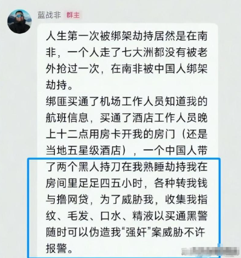 蓝战非南非被绑架的消息刷屏后,网友从最初的震惊转为接连的质疑,直到安保公司和知情人曝出细节,大家才发现这事远比想象的惊心。一场筹划半年的绑架案,藏着太多细思极恐的细节,也让网友的质疑逐渐有了答案。
