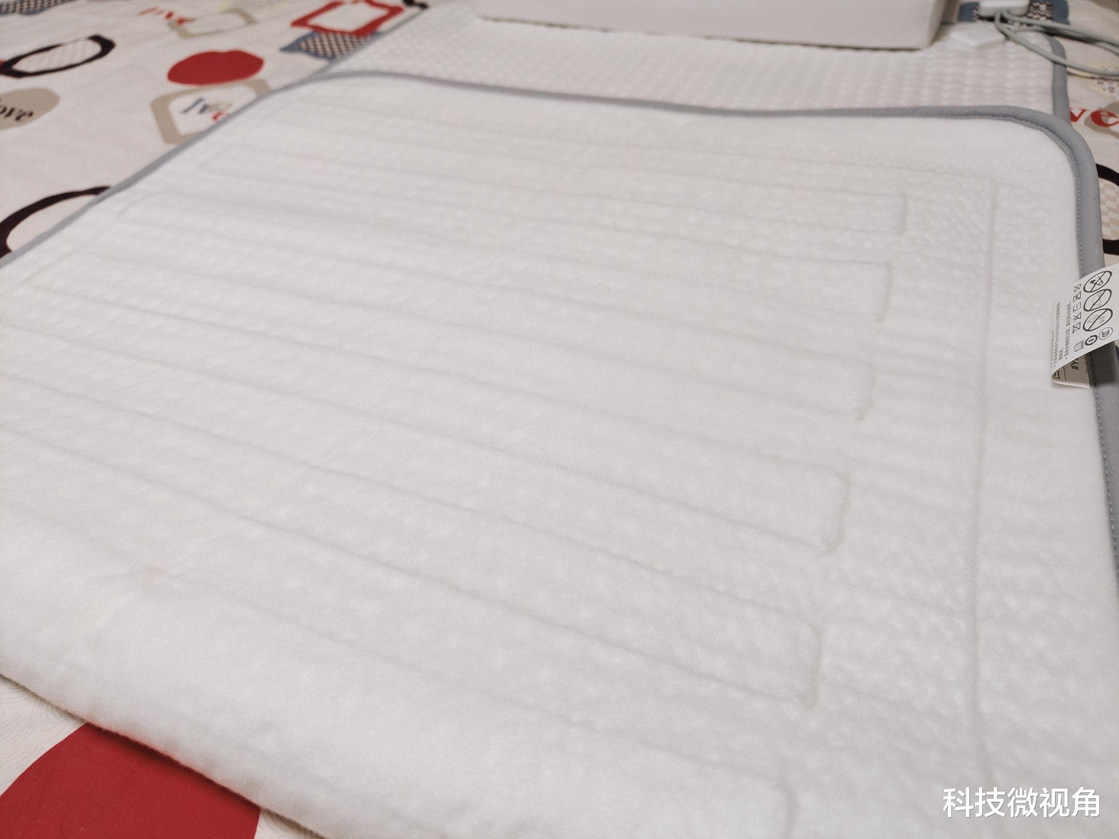 相比于普通电热毯,这款电热毯看起来更厚,其实这也是这款电热毯的优点,它采用了舒适加厚毯体,虽然看似是一个毯子,其实在内部则由亲肤层、舒适支撑层、无纺布固定层、双螺旋加热线以及无纺布固定层五种组成。有了这五层材质,也让这款毯子在使用上更加柔软舒适,并且保温性与加热性更好。