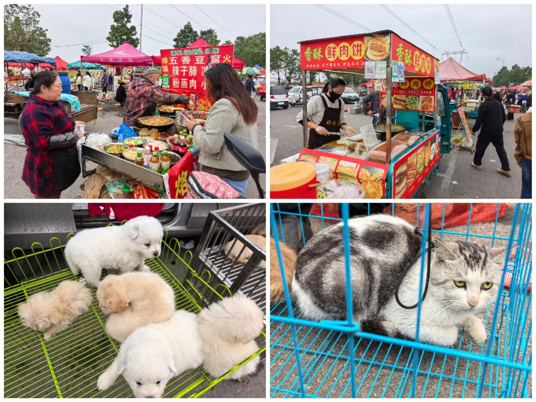 如今,赶集成了一种新时尚。年轻人在社交平台上分享赶集的照片与视频,把“逛狗市”当作一种休闲方式。在这里,食物现点现做,是记忆中的味道;氛围轻松自在,无需讲究繁文缛节;看着小动物嬉戏打闹,压力也随之消散。禹州高中生艾松说:“我和同学几乎每个大星期都来‘狗市’集合,充电半小时,续航半个月!”