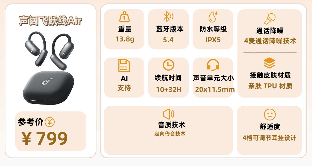 高性价比开放式耳机TOP8.声 阔飞跃线Air