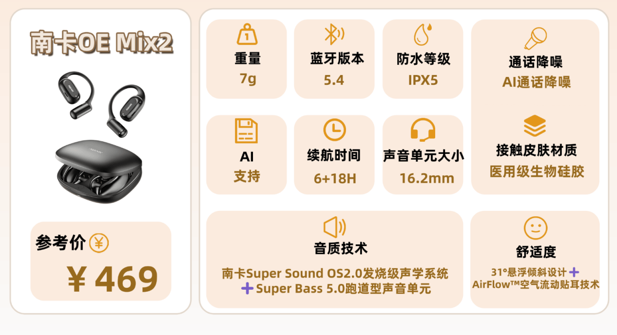 高性价比开放式耳机TOP1.南卡OE Mix2