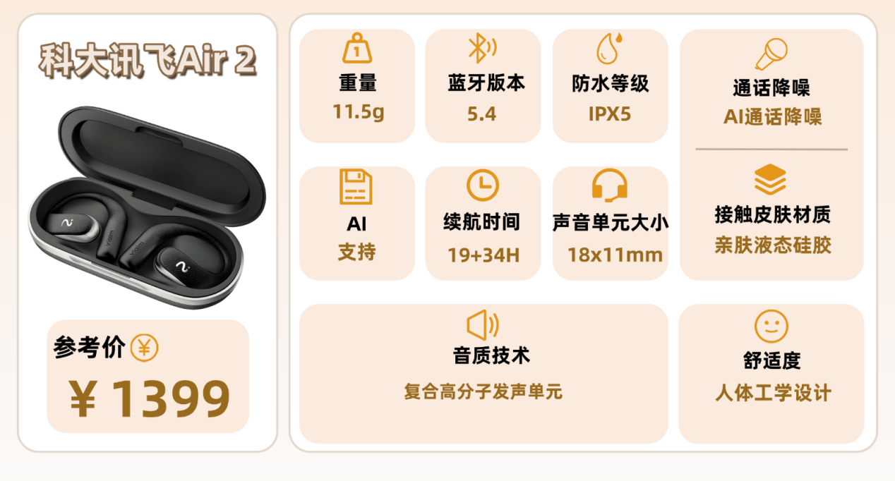高性价比开放式耳机TOP3.科 大讯飞Air 2