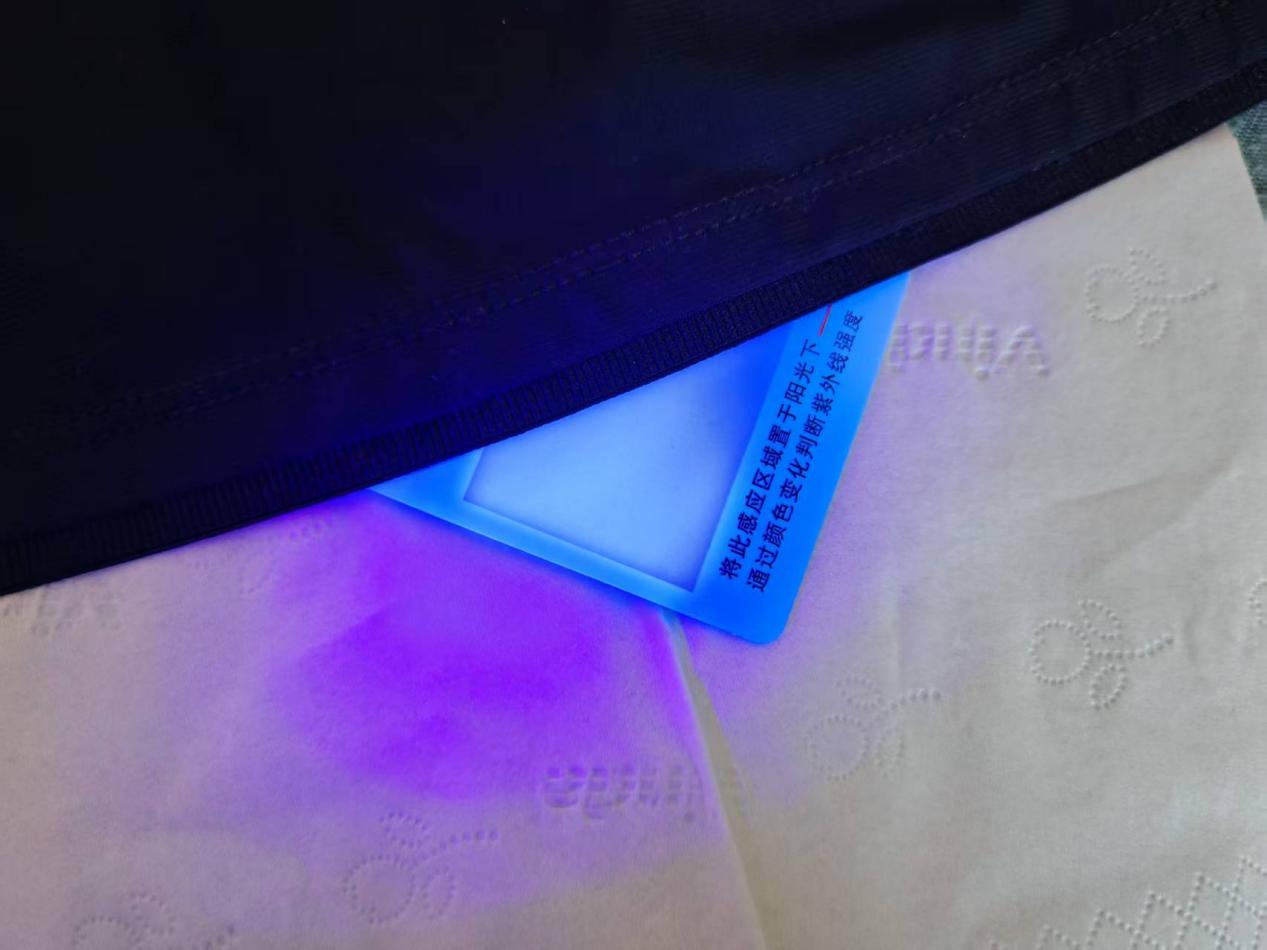 核心体验部分,我最看重的防晒效果,北归线 T8 直接给了我惊喜。我专门用紫外线测试卡做了实测,把测试卡一半用防晒衣遮盖,一半暴露在外,十几秒后,裸露部分瞬间变紫,而被遮盖的区域完全不变色。官方实测 UPFav 高达 287.7,远超国标 UPF50+,UVA 阻隔率超过 99%,全波段阻隔紫外线,防晒能力非常硬核。