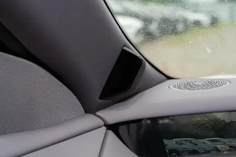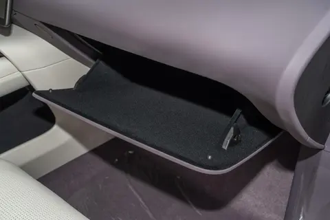 个人体验视角: 坐进驾驶舱,手能触及的中控台、门板等区域大多采用了软性材质包裹,触感细腻,拼接工艺也显得规整。引人注目的无疑是横贯于前挡风玻璃下方的35.4英寸一体式仪表屏,以及中央的15.6英寸悬浮式中控屏,科技氛围的营造十分到位。上下扁平造型的方向盘手感不错,集成的电子怀挡节省了中控区域的空间,让内饰整体风格更显前卫和整洁。