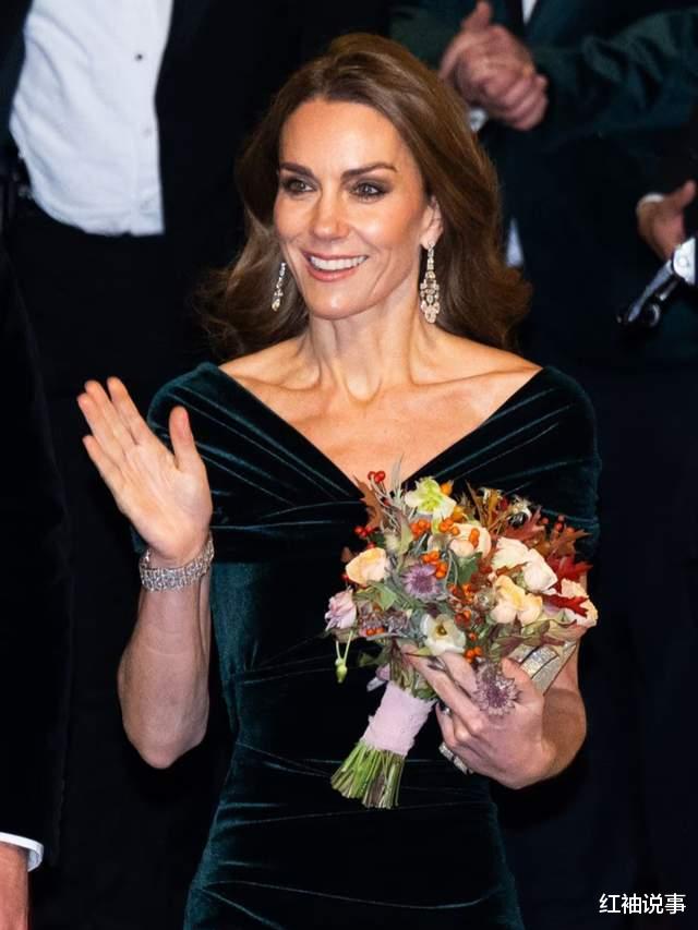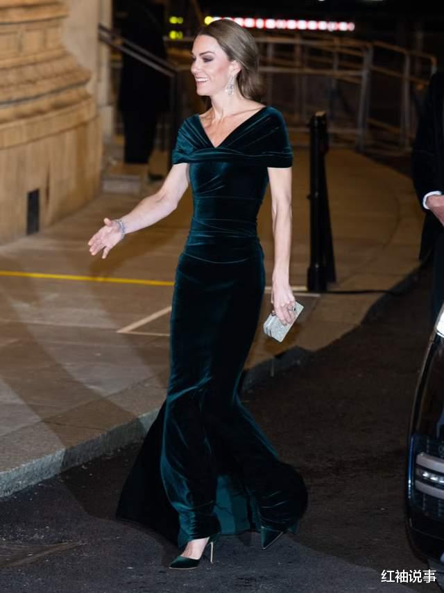 凯特王妃红毯造型绝美,一袭绿丝绒礼服仙气飘飘,让人移不开目光