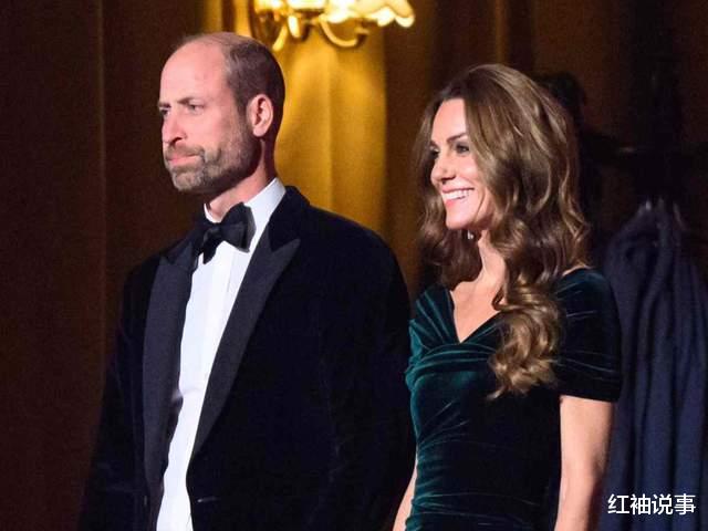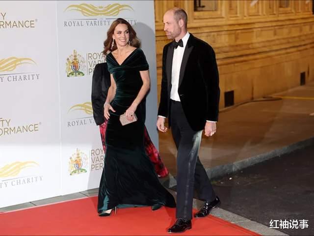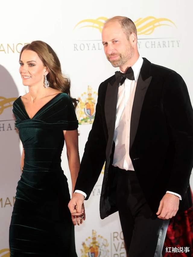 这次活动,也是凯特和威廉两年来第一次一起走红毯。他们俩都43岁了,出现在伦敦皇家阿尔伯特音乐厅,参加一年一度的皇家综艺演出。11月19日这天,夫妻俩的造型特别搭调。凯特王妃穿着短袖、V领的绿色天鹅绒礼服,威廉王子则穿着黑色领结搭配天鹅绒西装外套,两人站在一起,十分般配。