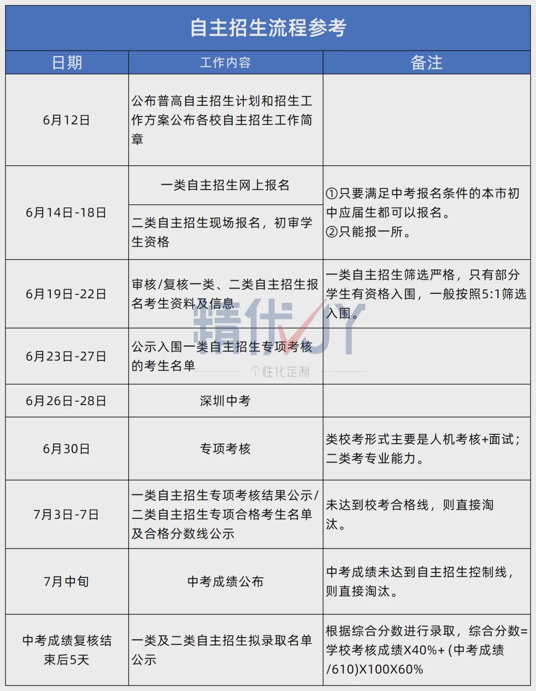 深圳中考自主招生分为一类自招和二类自招。满足中考报名条件的应届毕业生都可以报名。自主招生根据自招成绩和中考成绩综合择优录取,在中考分数不够的情况下,通过自招可以实现“降分录取”。