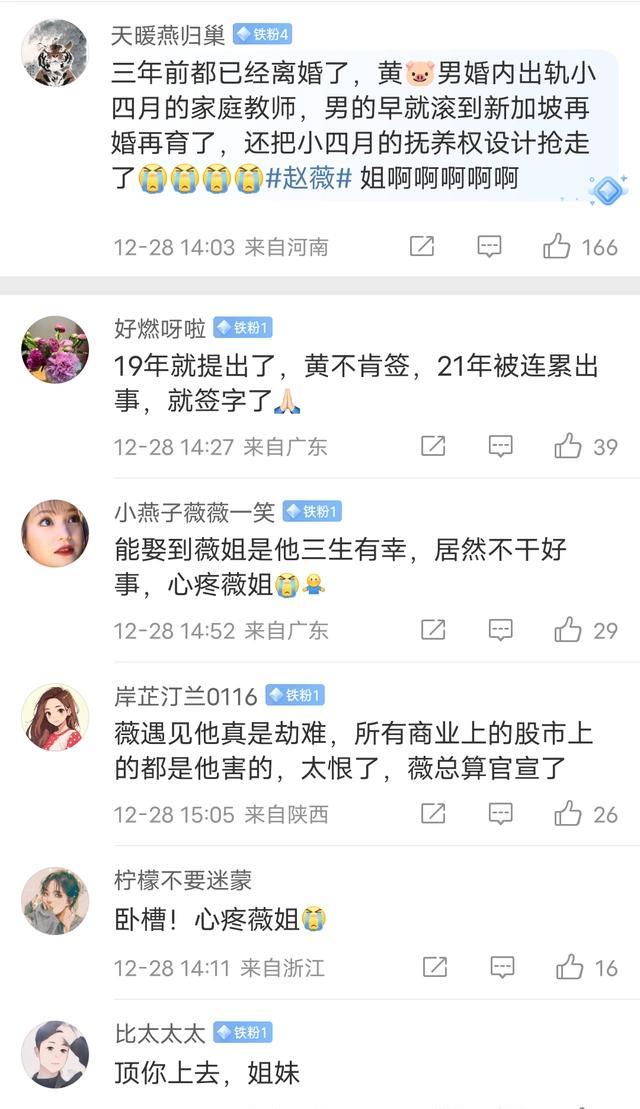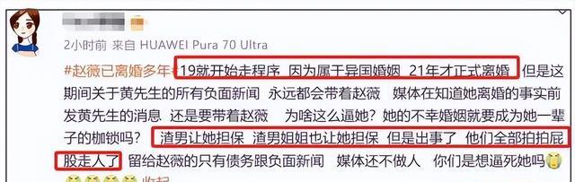 她透露说,赵薇和黄有龙是跨国婚姻,19年就开始走程序了,21年才正式离婚。