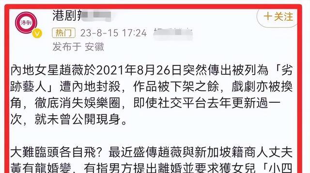其实,早在2020年,港媒就曾爆料称赵薇和黄有龙已于2017年离婚,只是当时并未公开。
