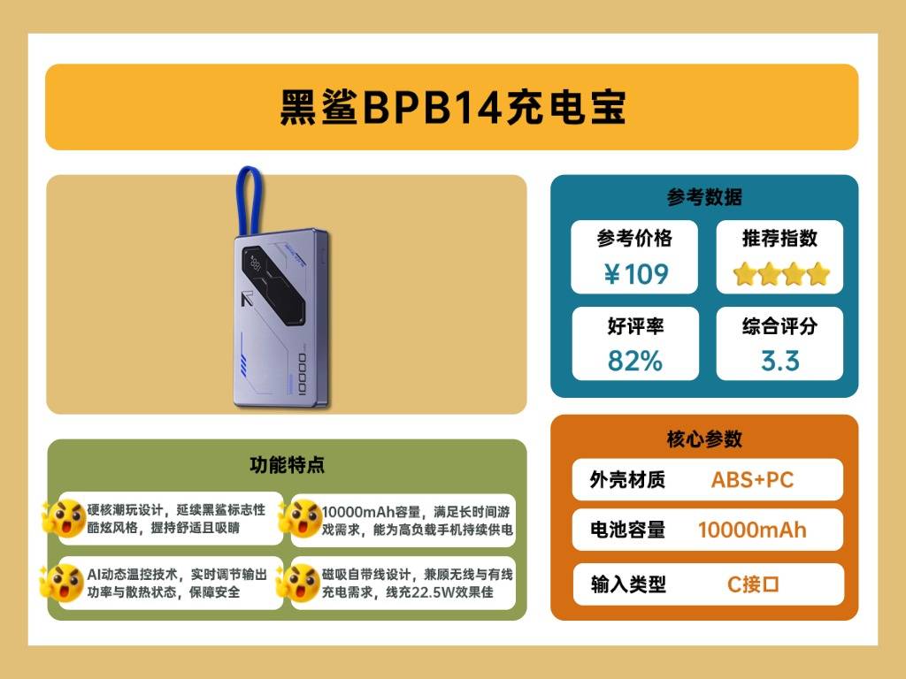 5、黑鲨 BPB14 磁吸自带线充电宝